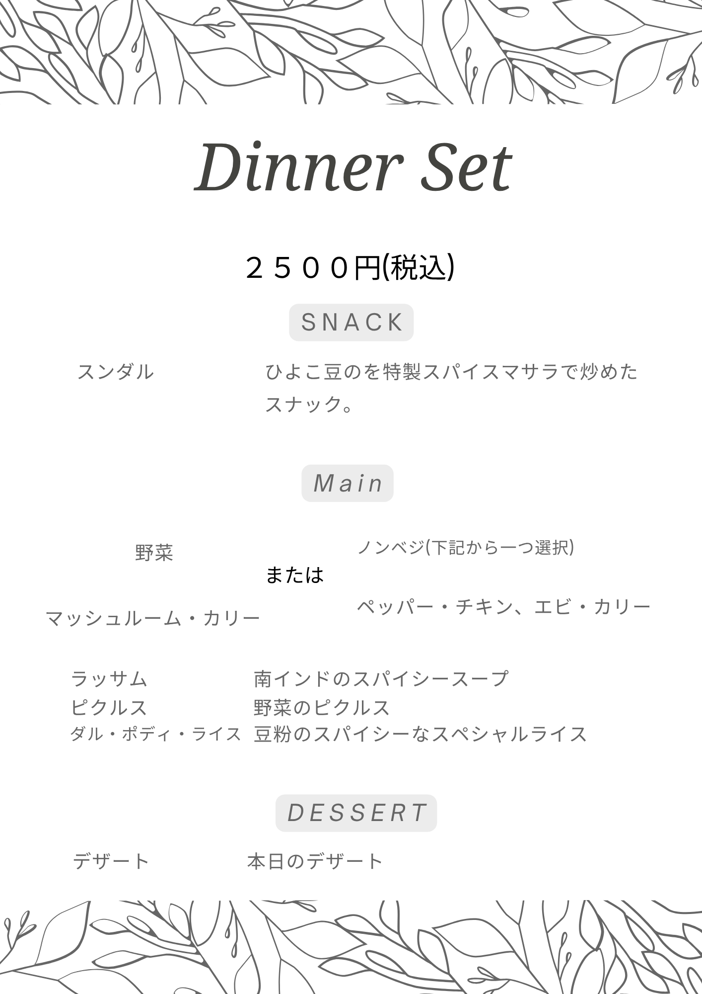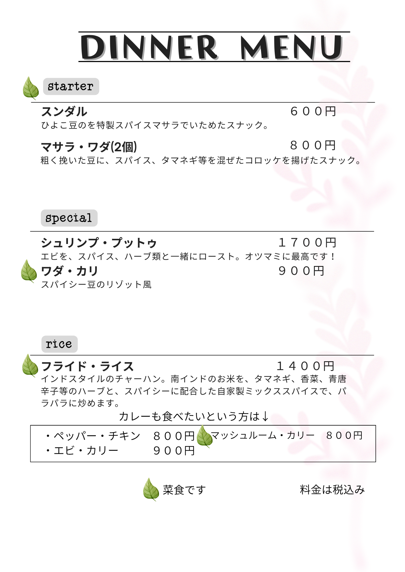 11/11(火) ベジ:1300円(税込) ノンベジ:1300円(税込)